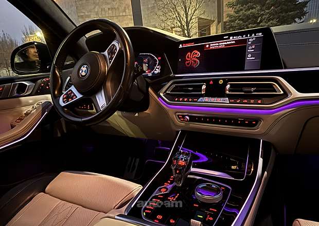 սրահի գույնը - Individual full leather ivorywh. Nightbl. Կոմպլեկտացիան մաքսիմալ հագեցած է - M Sports Package, Panorama Glass Roof, Sky Lounge, նստատեղերի տաքացում և սառեցում, նստատեղերի մերսում. Կլիմատ կոնտրոլ բոլոր 3 շարքերում.
