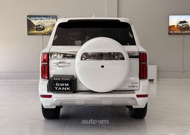 GWM TANK 500՝ 2.0 լիտր Turbo Hybrid (HEV) շարժիչ, 258 կՎ / 350 ձիաուժ հզորությամբ, 9 աստիճան (ZF) ավտոմատ փոխանցման տուփով և Full-Time 4WD քարշակմամբ։ Հենասահքային (Body-on-Frame) թափք, դիմացի և հետևի կամրջակի բլոկավորում, բաժանարար տուփ և «Tank Turn» ֆունկցիա։ Վարման ռեժիմներ՝ City, Sport, Eco, Off-Road, Snow, Sand, Mud, Rock։ Անիվներ՝ 18-20։ Գործարանային երաշխիք՝ 5 տարի կամ 150,000 կմ։