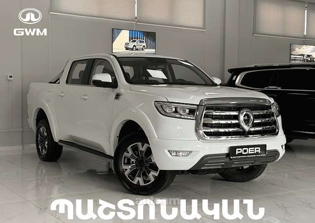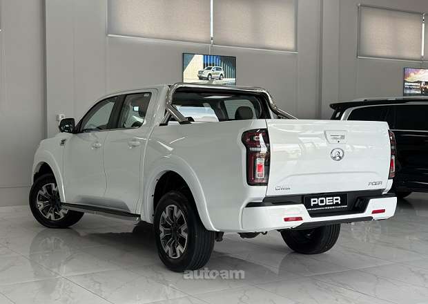 GWM POER հզոր և հուսալի փիքափ՝ 2.0L տուրբո դիզել շարժիչով, 8-աստիճան փոխանցման տուփով և հենասահքային թափքով։ Գետնից բարձրությունը՝ 227 մմ, ծանրաբեռնվածությունը՝ մինչև 900 կգ, ծախսը՝ 9.4 լ/100 կմ։ Հագեցած է CarPlay, ադապտիվ կրուիզ կոնտրոլով, ավտոմատ արգելակման, գոտին պահելու և նշանների ճանաչման համակարգերով, 360° տեսախցիկով ու առանց բանալի մուտքով։ Պաշտոնական երաշխիք՝ 3 տարի կամ 100,000 կմ։