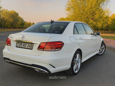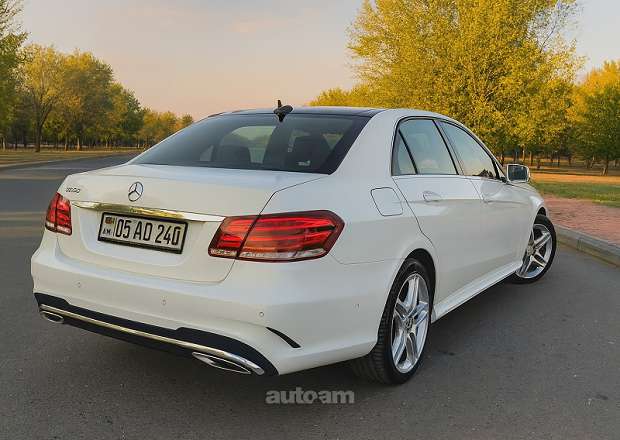 Mercedes-Benz E 300 AMG Sport, գնվել է Հայաստանում Mercedes Benz պաշտոնական դիլերից և սպասարկվել է այնտեղ։ Մեկ սեփականատեր, չվթարված։ 2015 թ, 3.0 լ V6 (252 ձ.ու.), ավտոմատ 7G-Tronic Plus, հետևի քարշակ։ Գույն՝ սպիտակ, սրահ՝ սև։ AMG փաթեթ՝ բամպերներ, 18" սկավառակներ, սպորտային նստարաններ, ղեկ, կախոց։ Panorama տանիք, LED լուսարձակներ, հետևի տեսախցիկ, տաքացվող նստարաններ, կլիմատ կոնտրոլ, COMAND APS։ Ավտոմեքենայի հետ տրամադրվում է նաև ձմեռային անվադողեր՝ սկավառակներով։ Մեքենան գտնվում է անթերի վիճակում։